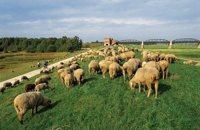 Schaapheerde up d` Diek dicht bi de olle Elvbrügg bi Damnatz
